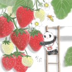 いちごの日のちびパンダ🐼🍓ぱくっ #イラスト #ゆるいイラスト #絵描きさんとつながりたい #イラスト好きな人とつながりたい #絵柄が好みって人にフォローされたい #illustration