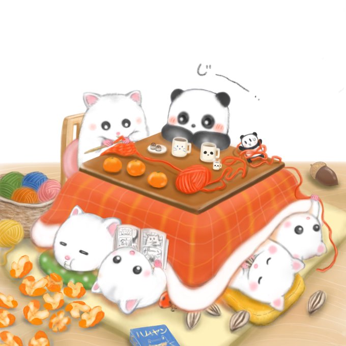 こたつでぬくぬくするちびパンダ🐼🍊 #イラスト #ゆるいイラスト #絵描きさんと繋がりたい #イラスト好きな人とつながりたい #絵柄が好みって人にフォローされたい #漫画が読めるハッシュタグ #illustration