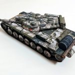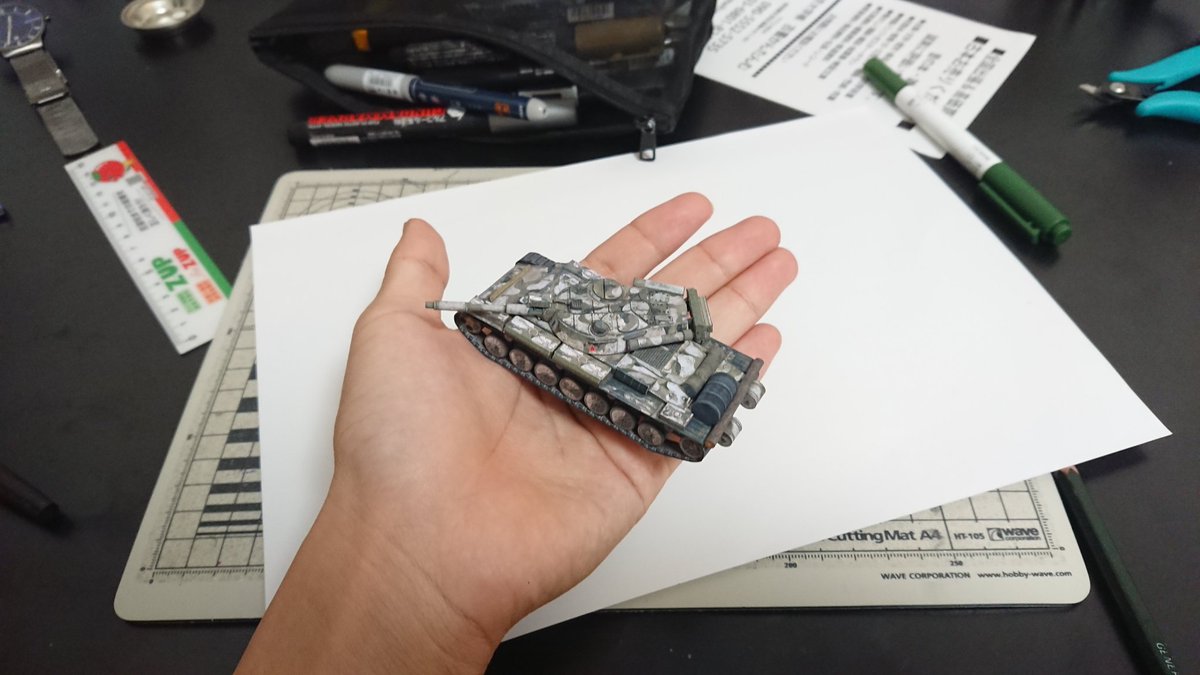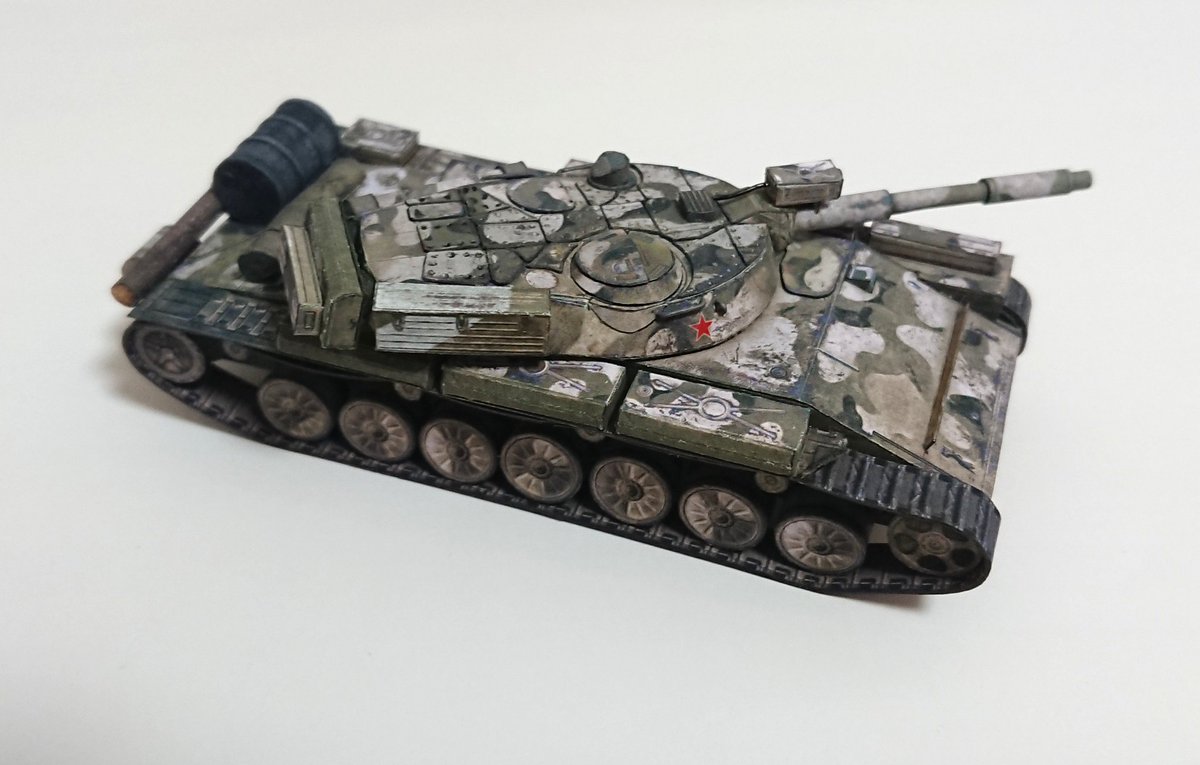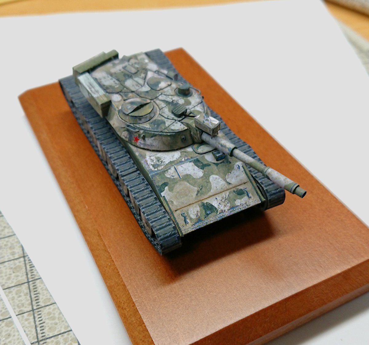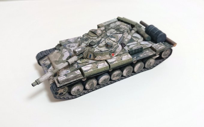 1/72 ペーパークラフト T-100 LT "Gyurza" 完成しました! 無線アンテナに真鍮線、それ以外はコピー用紙と厚紙でできてます ソ連の戦車はかっこいいですね~ ゴツゴツ感がたまらない #ペーパークラフト #papercraft