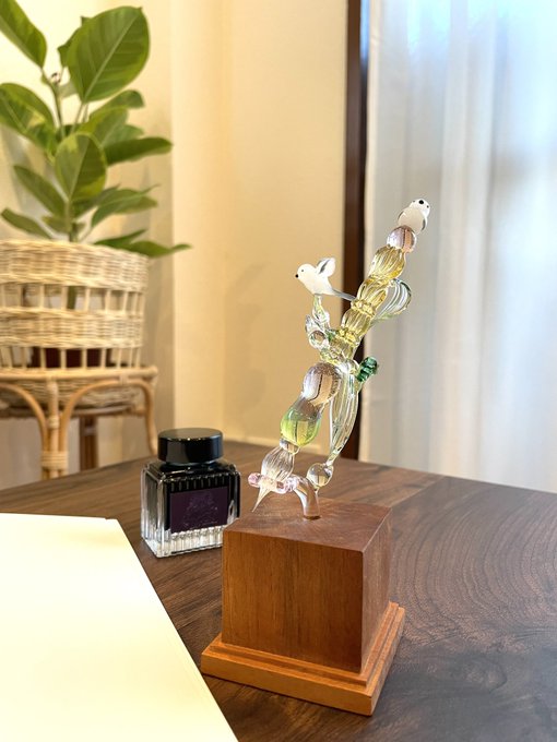蔦谷書店(TSUTAYA BOOKS)さんとのコラボガラスペンのご紹介🍃 蔦屋書店限定デザインとして、「蔦の葉」をイメージしたガラスペンを販売いたします!蔦の葉が軸に絡まり、日に当たった時の美しさをイメージしたグリーンのペンに蔦の葉のペンレストがセットになっています。 store.tsite.jp/portal/kanshas…