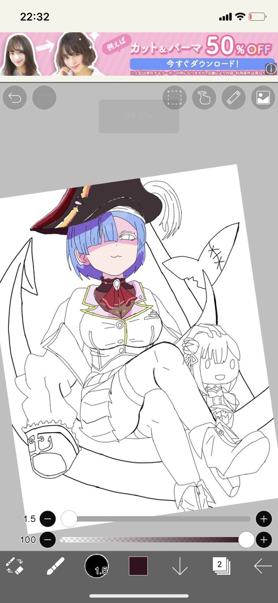 4枚目 レム×宝鐘マリン #イラスト好きな人と繋がりたい #レム #リゼロ #宝鐘マリン #ホロライブ #マリンのお宝 #無名絵師 #コスプレ