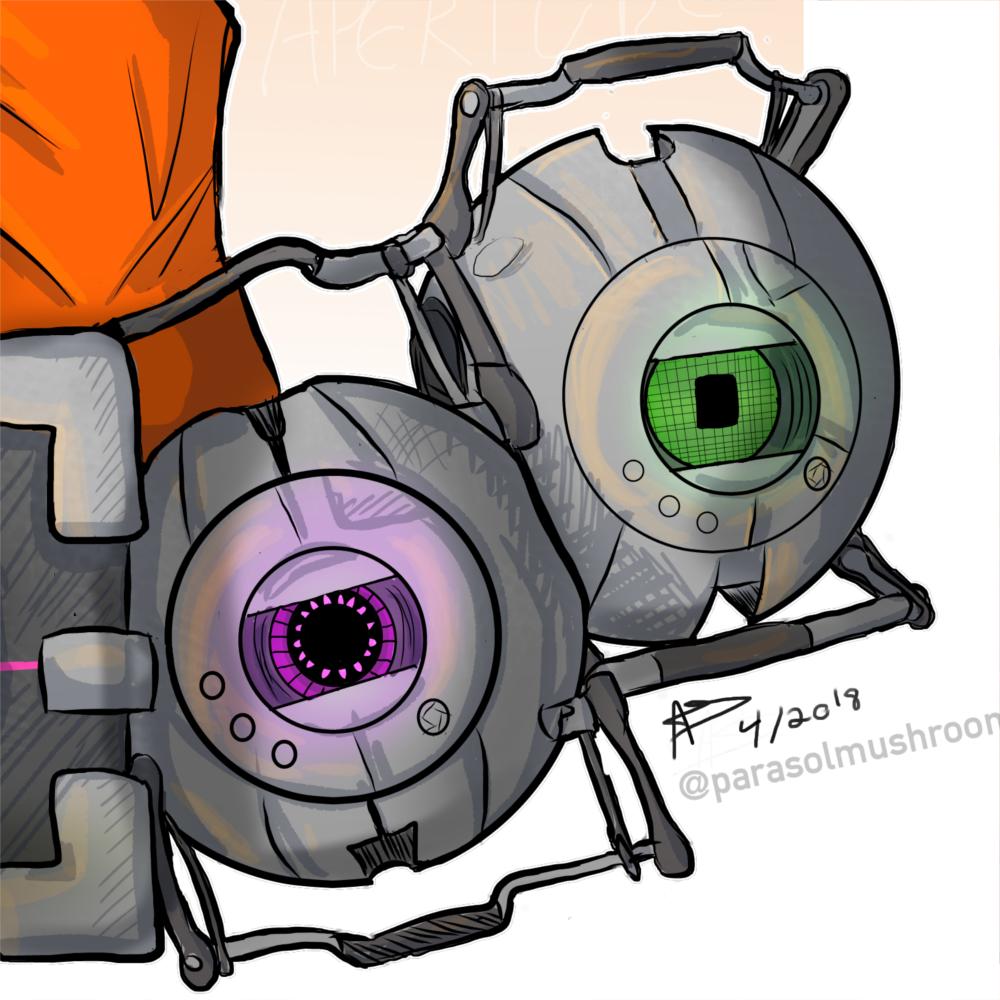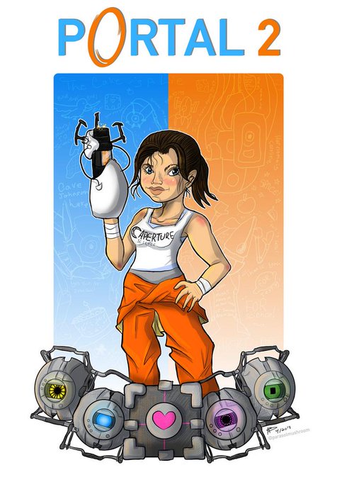 I kept forgetting to post this! HAPPY (BELATED) ANNIVERSARY PORTAL 2! I drew this in #GIMP and #Medibang. Process video: youtube.com/watch?v=s82oxr… #portal2 #portal #fanart #chell #Glados #PotatOS #digitalart #digitalpainting