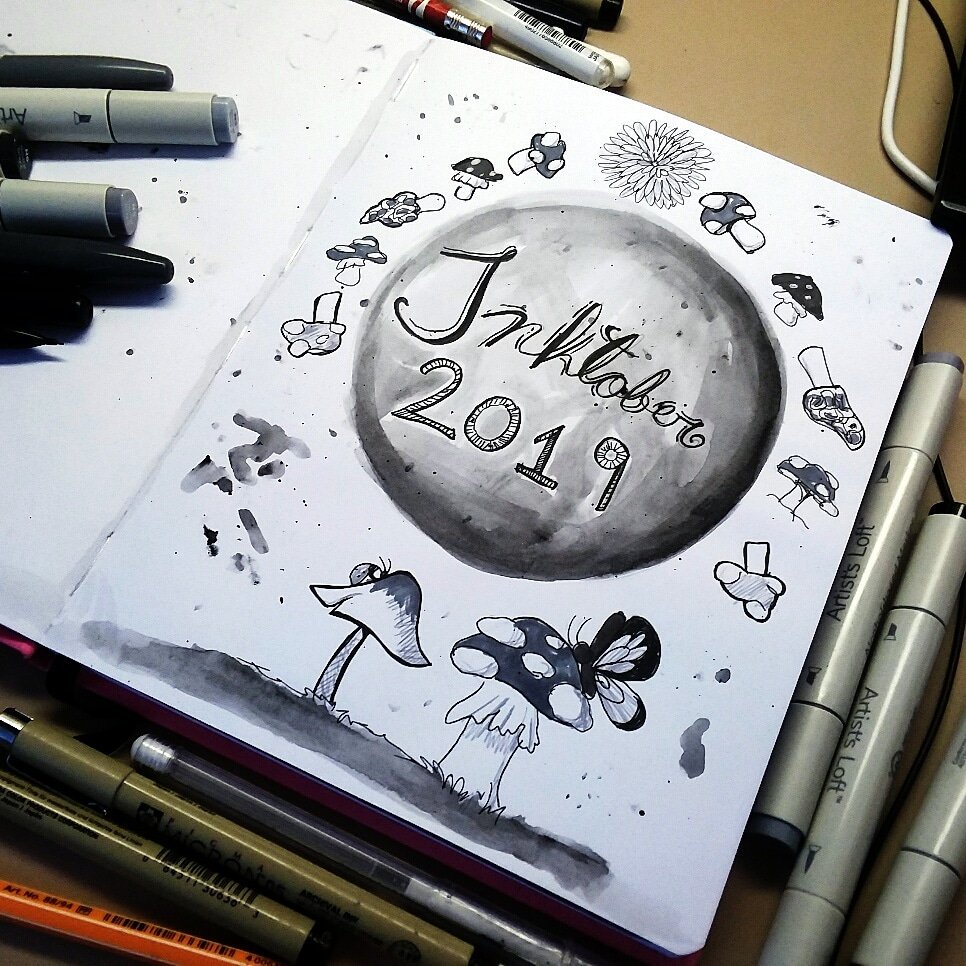 Inktober tomorrow! I'm so hyyyypee!! Here is a vlog of me setting up my sketchbook! Video: youtu.be/AF5t__wsZv8 #inktober #inktober2019 #vlogger #vlogging #smallyoutuber