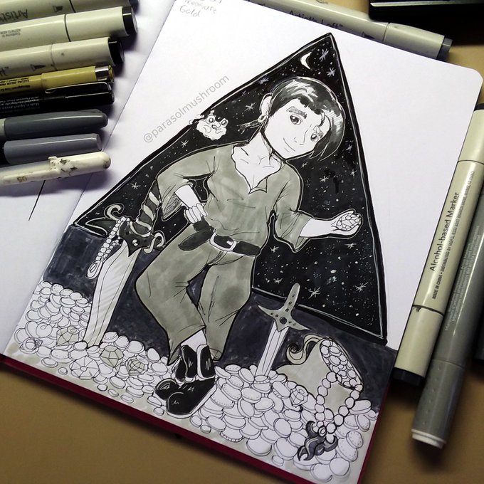 #inktoberday21 GUYS I'm so happy with this one!!! I hardly get to draw treasure planet fan art so this was so much fun. My Prompts were Treasure and Gold. :D #Treasureplanet #drawing #draw #inktober #inktober2019