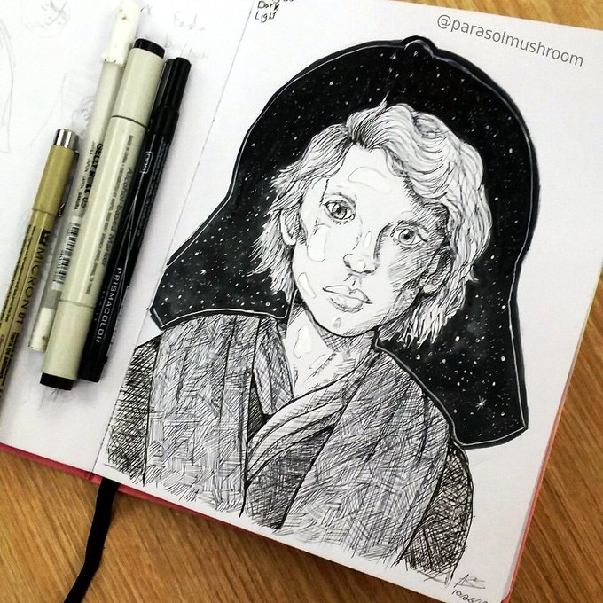 #inktoberDay26 & #InktoberDay27 Anakin & Padme! 26 prompt was light and dark so..yah obviously Anakin XD Day 27 was necklace and coat...I just wanted an excuse to draw a Japor Snippet and Padme and thought it would be a cool set. #starwarsfanart #fanart #starwars #Inktober