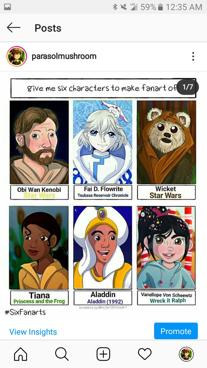 What a trip xD I took my time but I'm mostly proud of each one of these. Maybe I'll do it again with characters I pick instead of others. I hope you all enjoy! 💞 #sixfanarts #disney #starwars #starwarsfanart #anime #faiflourite