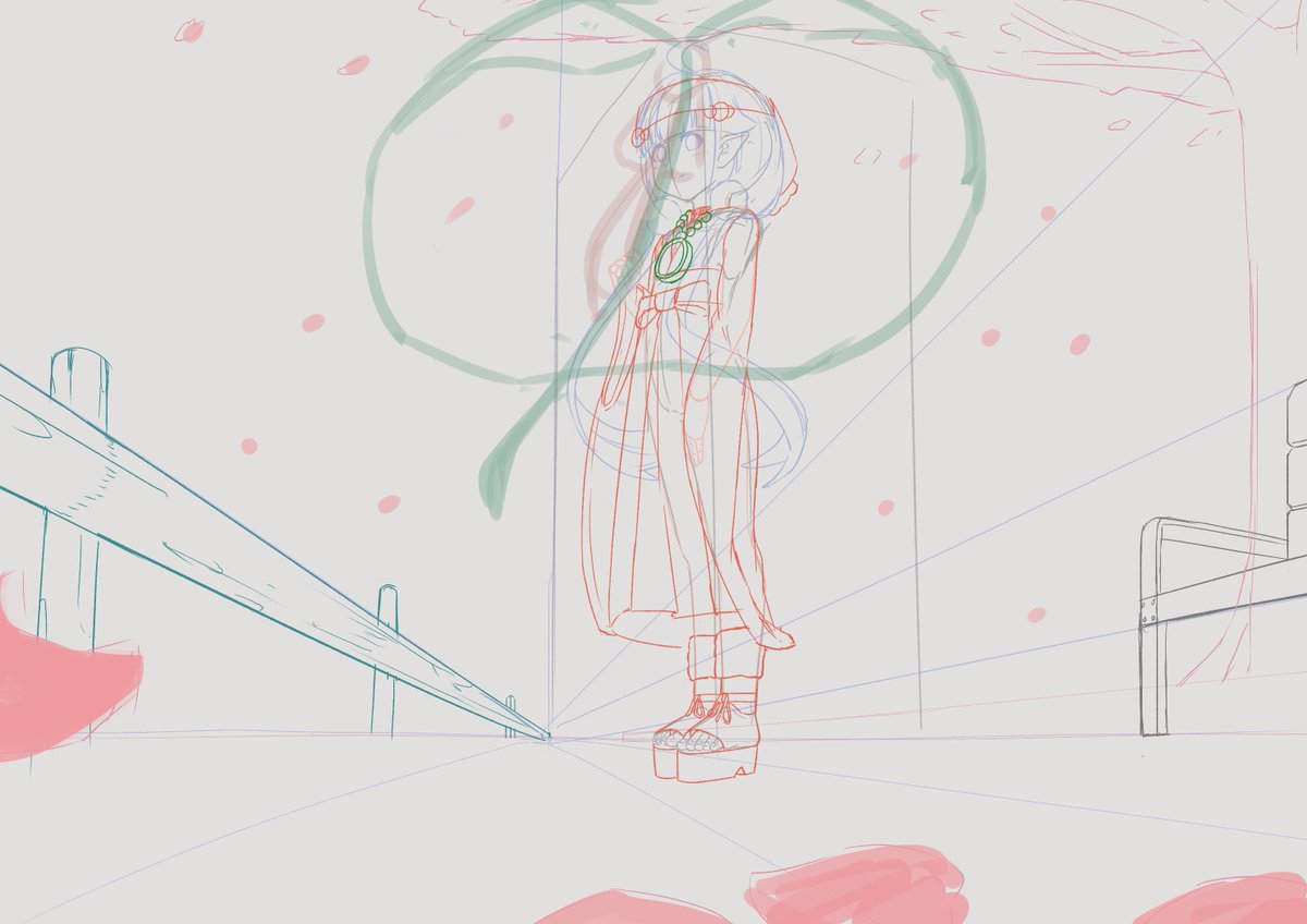 #えんぴつころころ ラフ段階で間違えて背が高くなったまま描きました😓 服のデザインはこの前ノンノさんがリツイートした服を見て描きました 完成したらまたアップします