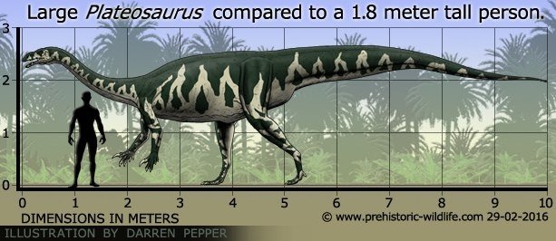 Plateosaurus: Found in 1837 Species:P.trossingensis, P.longiceps,P.gracilis Length:4-10 meters Height:2-3 m Mass:600-4000kg Bipedal herbivore! Family:Plateosauridae One of the first large-size dinosaurs! #FossilFriday #dinosaur @TomHoltzPaleo #Paleoart #paleontology