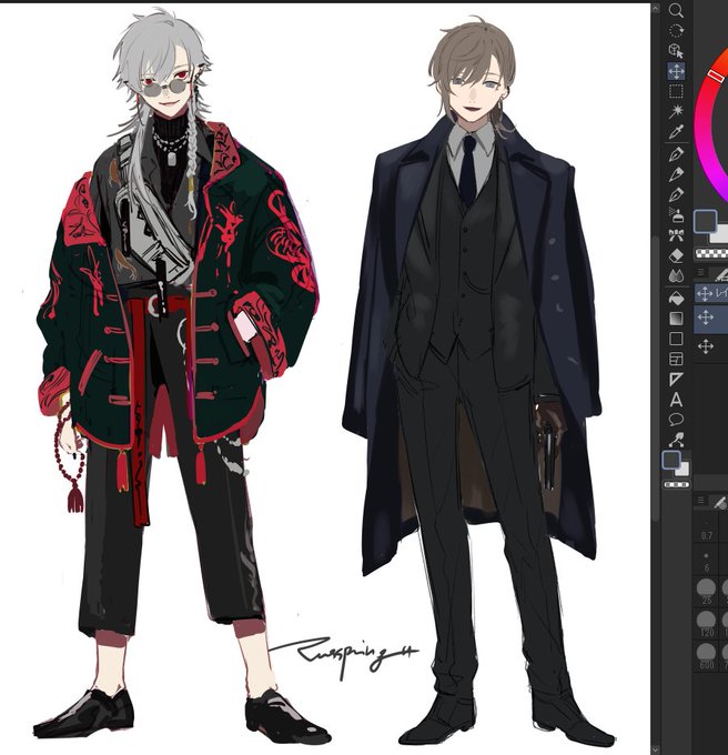 791 5419 にじそうさく07で頒布予定、2Pカラースタイルのアクリルスタンドのイラストです。おそらく14cmくらいです。 23/04/16 17:14