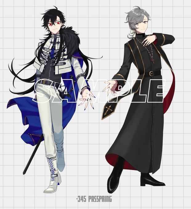 にじそうさく07で頒布予定、2Pカラースタイルのアクリルスタンドのイラストです。おそらく14cmくらいです。