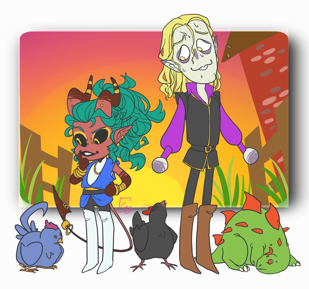 #ArtistOnTwitter Ahah,, Well hello, I'm a disabled/spoonie character artist that wants to get better at drawing scenes and background elements when I feel well enough to practice at it ❤️ I don't have a lot of recent art, but uh *Offers examples of what I guess I'm capable of*