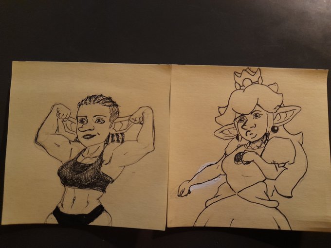 #inktober #gobtober2021 day 10 and 11: videogame cosplay and professional wrestler. Yes, I'm late, I'll do robo today tho