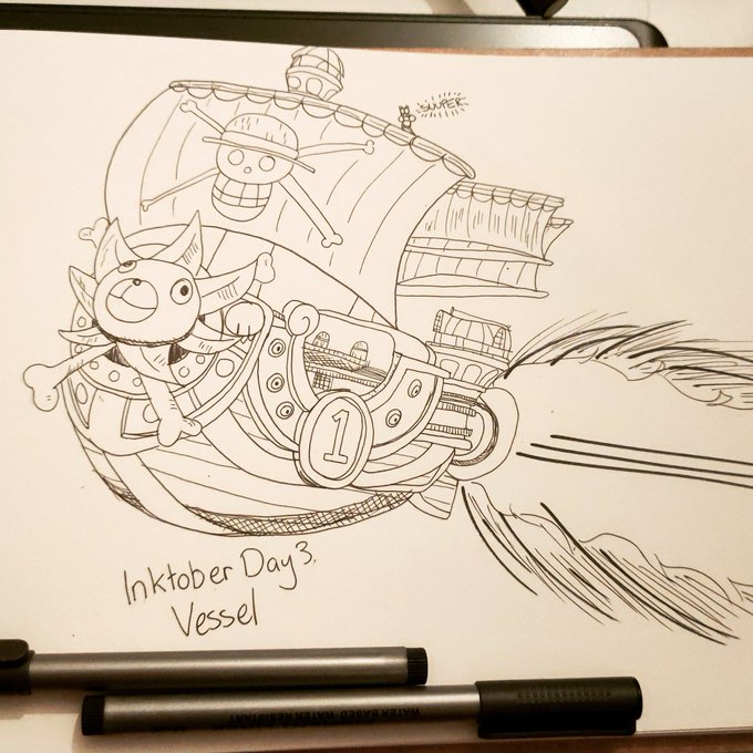 Day 3 - Vessel. Featuring The Thousand Sunny from One Piece. #inktober2021day3 #inktober2021 #Vessel