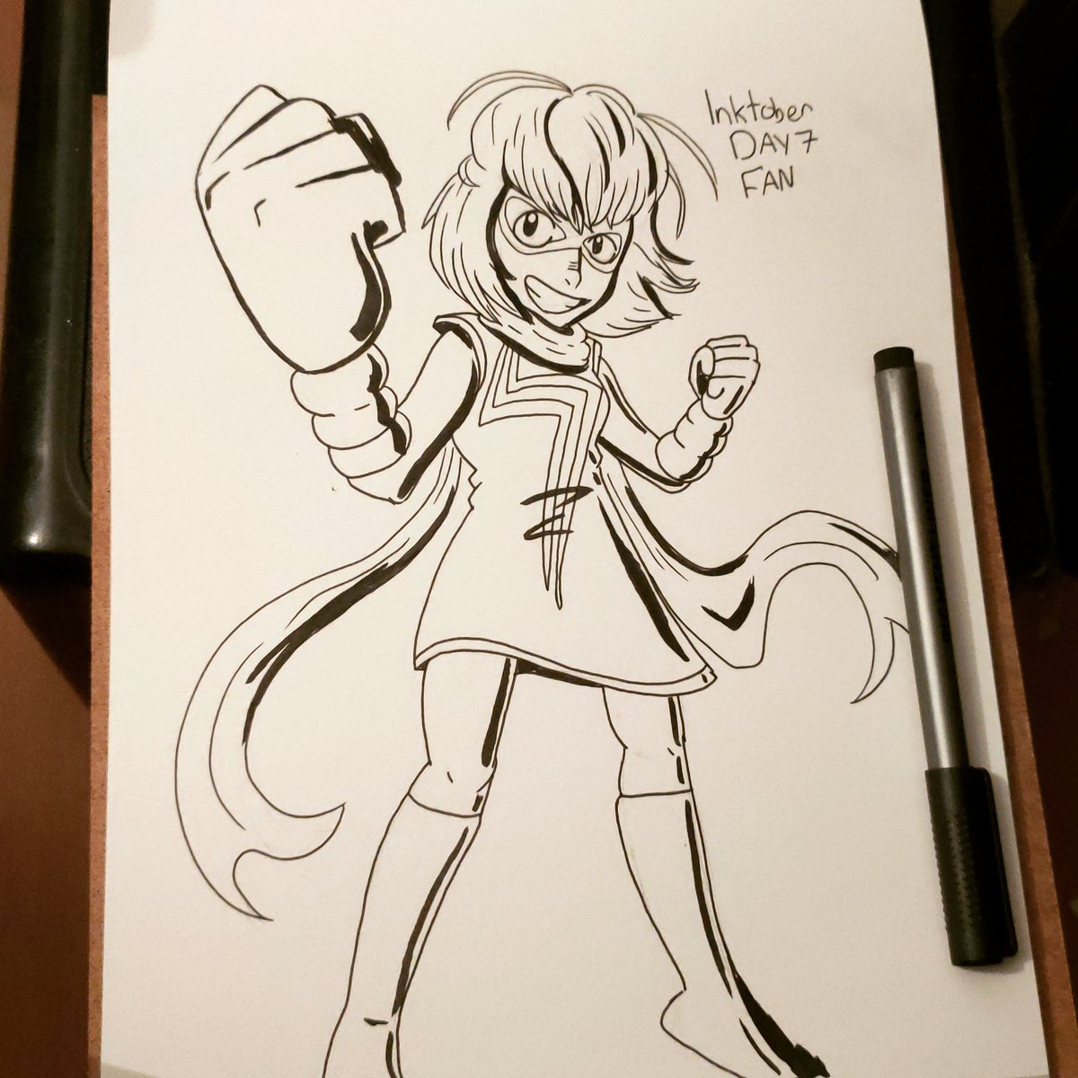 Day 7 - Fan. Featuring Ms. Marvel from Marvel Comics #inktober2021 #inktober2021day7 #fan #MsMarvel
