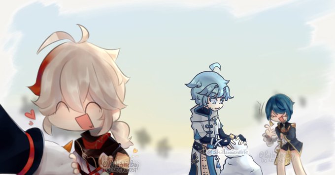 1 13 Do not repost ! Collab w @Skill_Entertain !!! A really late Christmas drawing 🧍♂️ I drew #kazuha and #xingqiu while she drew #chongyun, our coop team :] .. #genshinimpactfanart #genshinimpact 22/01/04 09:47