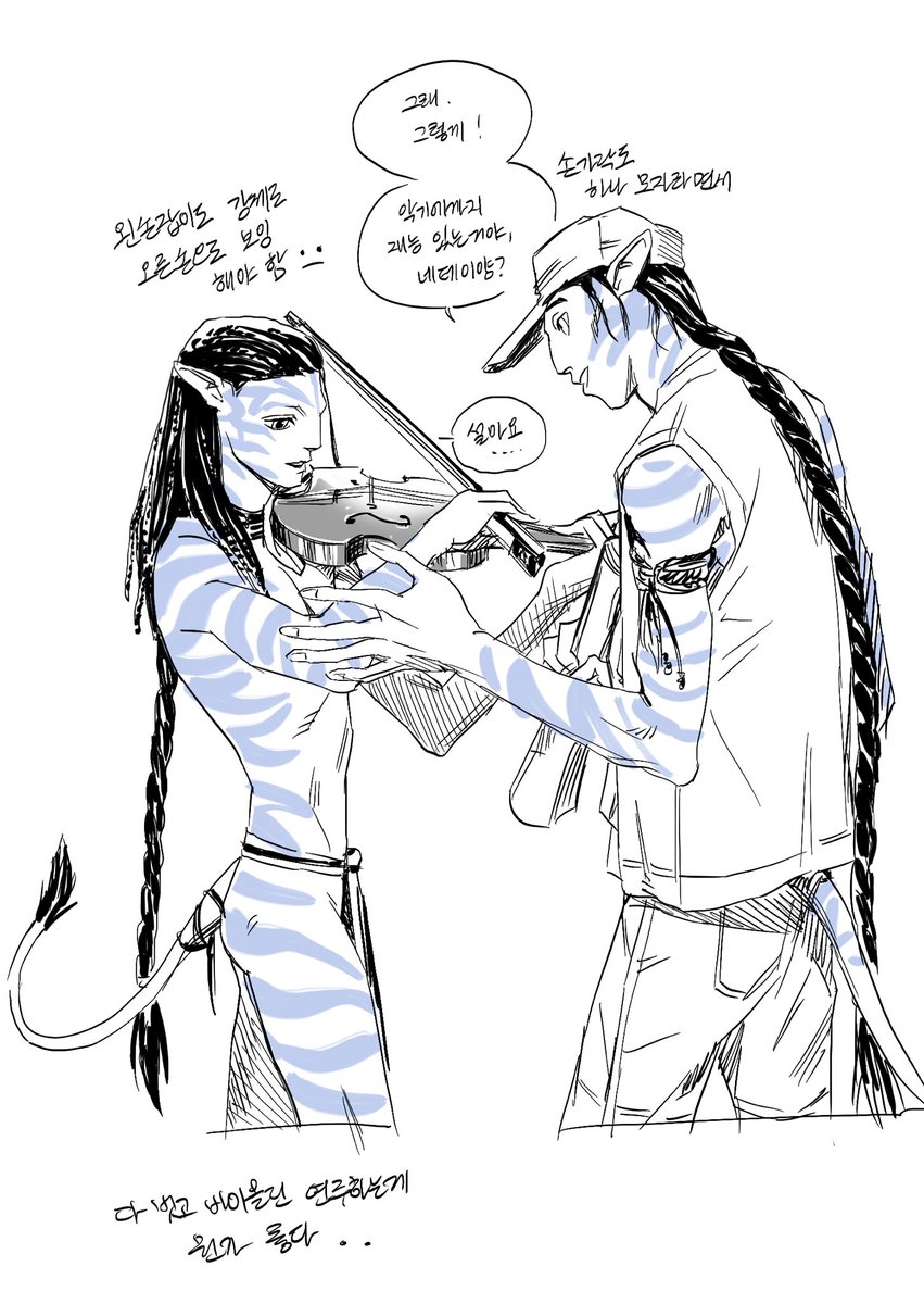 노엄한테 바이올린 배우는 네테이얌 진짜 보고싶어서 그렸다😭 가능성이 0퍼는 아니잖아… twitter.com/pathfinderavt/…