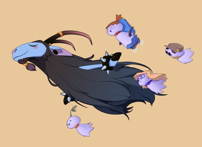 The blissful poltergoat floats onto the field! Acompanied by the #DoigandSwift mod-ghosts! More #GiftArt for some friends on the other side!