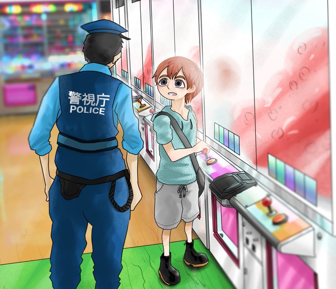 (実話)ゲームセンターにて 時刻18時 警察「すみませんが、今お一人?」 ワイ「? 友達と来てます…」 警察「そうなんですか!今おいくつ?」 ワイ「20歳です。」 警察「ええ!?20歳!?? 若く見えますね!」 ワイ「よく言われます!沖縄でも言われました!」 #イラスト