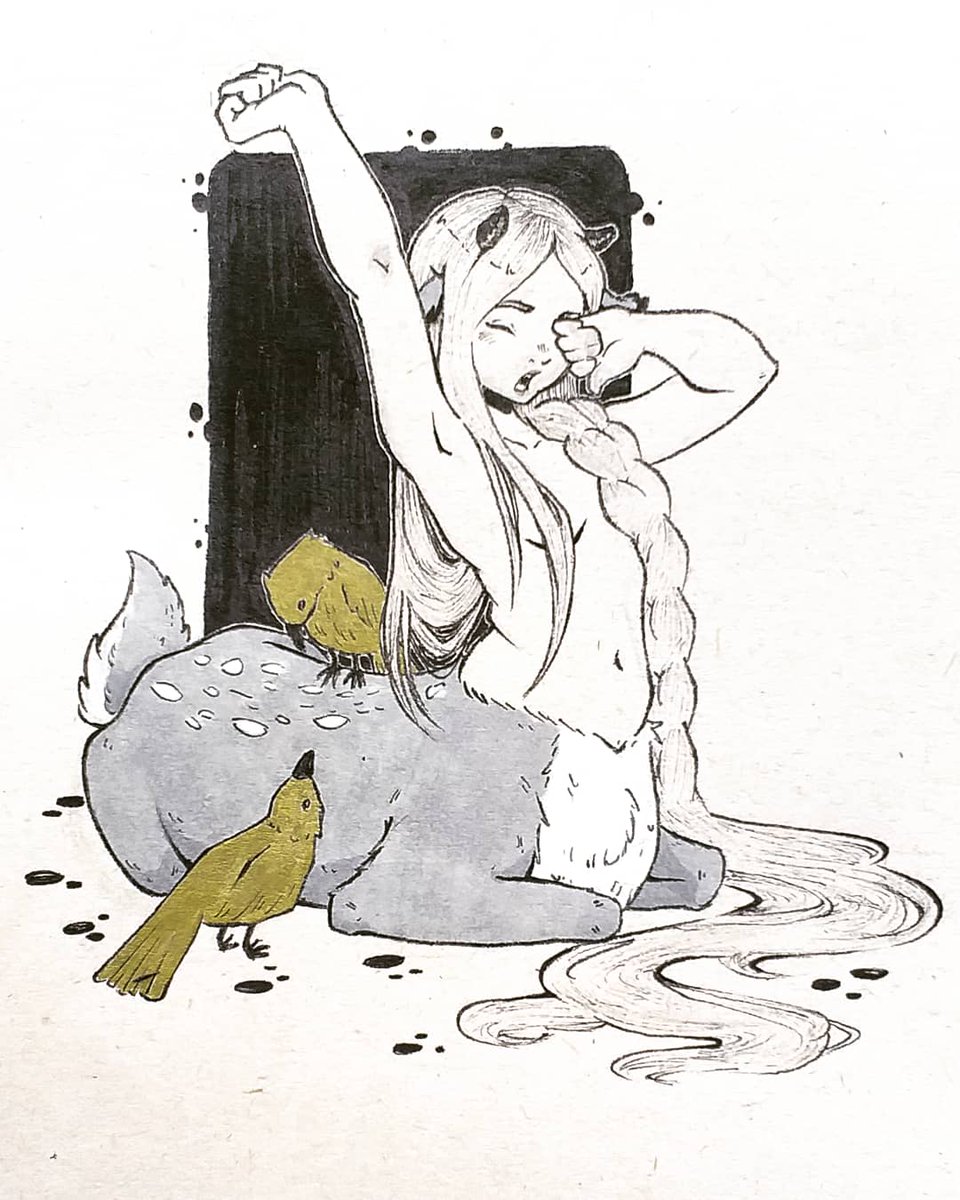 5 10 05 . . . . . #drawing #illustration #portrait #lineart #inkdrawing #ink #inklineart #centauro #deer #crows #drawtober #tintubre #girl #longhair #inktober #inktober2020 #day5 20/10/06 09:21