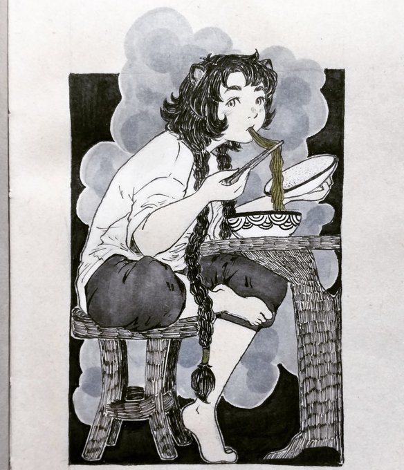 1 3 07 . . . . . #illustration #portrait #lineart #drawing #inkdrawing #ink #inklineart #racoon #braidstyles #noodles #traditionalart #ramen #tintubre #drawtober #doodletober #inktober #inktober2020 #day7 20/10/08 11:19