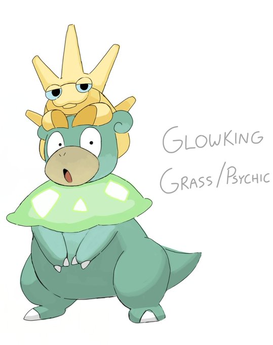 I really like this idea, so heres my take on a convergent pokemon Introducing Glowpoke, this pokemon is often found deep in dark forests, they are fairly easy to find however because the mushrooms on their tails glow twitter.com/MrDjWalnut/sta…