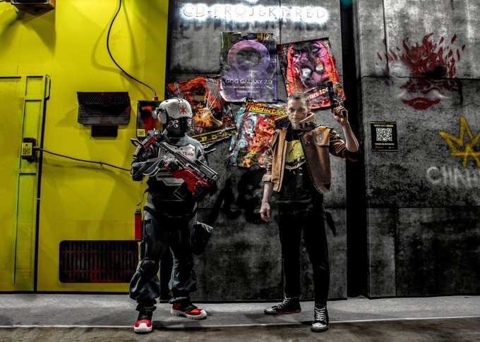 Night city heat 🔥 •Cyberpunk 2077 • V & Trauma Team Soldier Cosplayers: @MMind_Flayer & @ZloverRU Photos from @igromir and @comicconrussia @CDPROJEKTRED @CyberpunkGame #Cyberpunk2077 #cosplay #videogames #punk #Cyberpunkcosplay #cosplayers #Nightcityheat #Traumateam