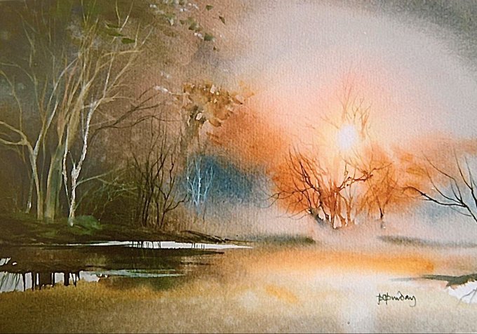 15 114 Frosty Morning. #etsyseller #etsyshop #watercolorlandscape #landscapepainting 23/01/17 16:59