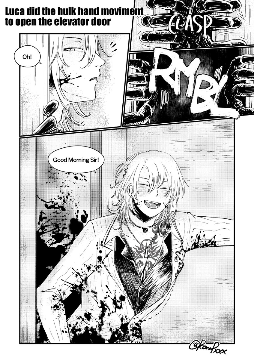 Vampire Shu probably have to go outside for meals (read from top right to bottom left) #YaminoArt #drawluca