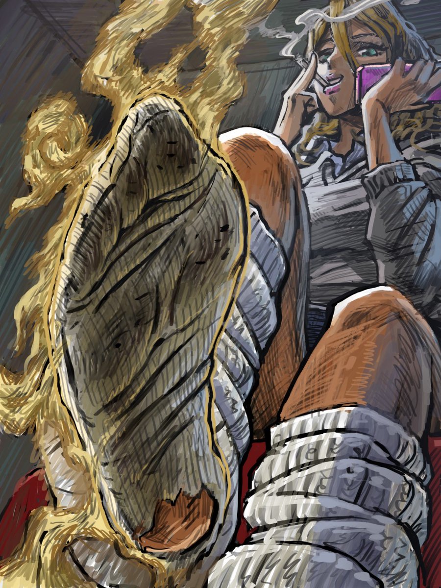 トレーニング後の足が臭すぎるビーデルさんの素足バージョン🧦 このほうが脱いだ靴下の意味がでていいな・・・。 Videl's feet after training is too smelly.(BarefootVer) #footfetish #barefoot #sockfetish #footworship