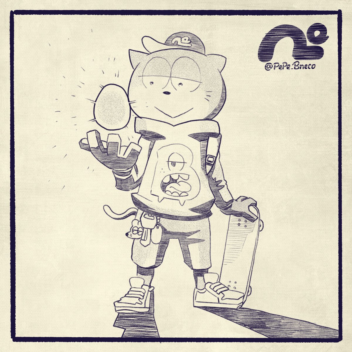 たまご ってね 生物のたまご、孵化するたまご全般を「卵」、 調理されたものや食材を「玉子」って 表記されるそうです。 知らんけどw #PePe_Bneco #猫 #cat #イラスト #illustration #役立つ情報が良いときいて #雑学が良いときいて