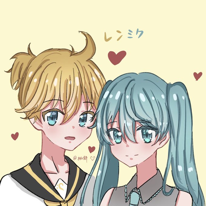 レンミクを描きました かわいい二人が大好き!😍😍😍😚😚😊😊 これからもたくさん描きます! #レンミク