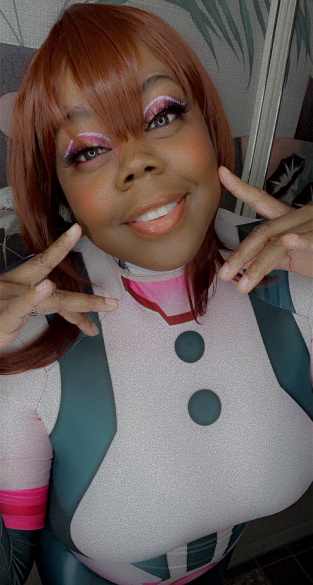 Geez...I’m always saving Deku. Oh hi! 😊 I’m Ochako Uraraka 💕🌸 my quirk Zero Gravity 🍃 . . . . #MyHeroAcademia #uraraka #urarakaochako #cosplay #anime #Academiacosplay