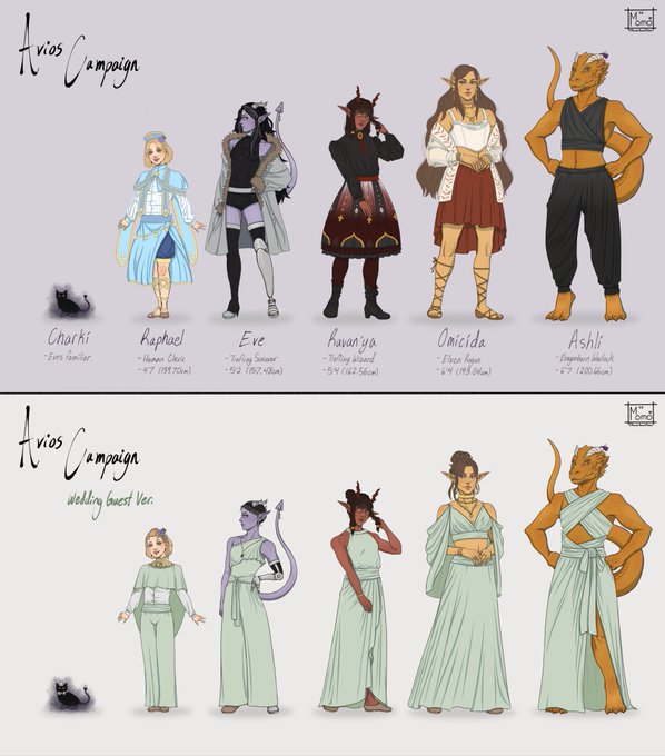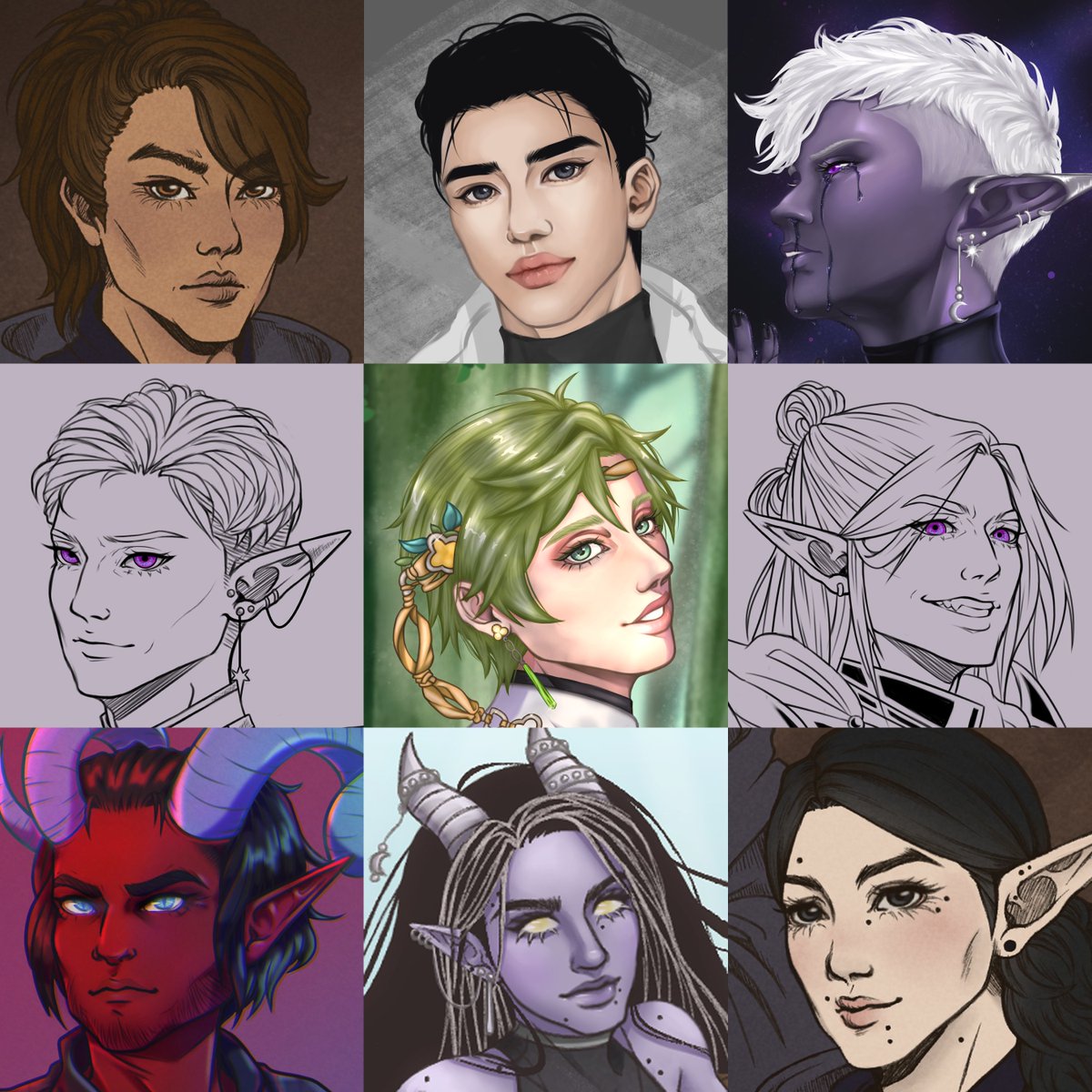 (Had to delete last tweet bcus I forgot signatures... oops.) Finished my friends and I's D&D character lineup. (It's like 90% done... but done enough.) #dndart #DnDcharacter