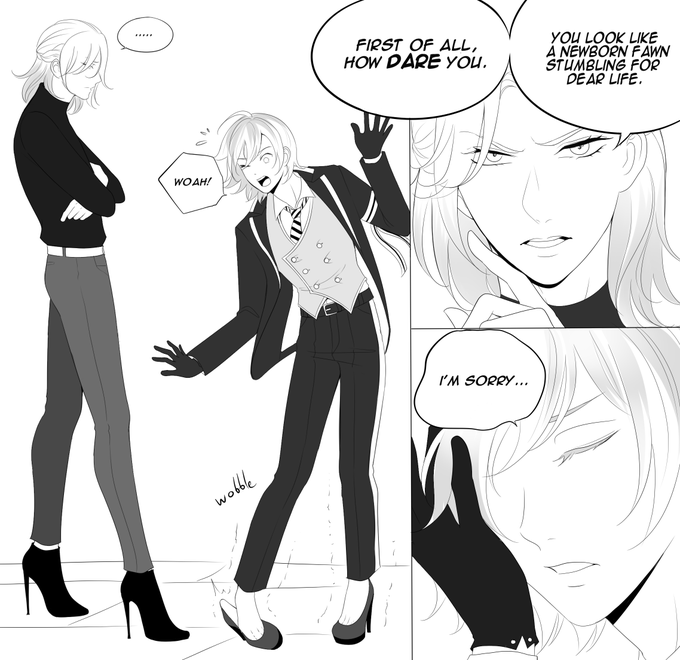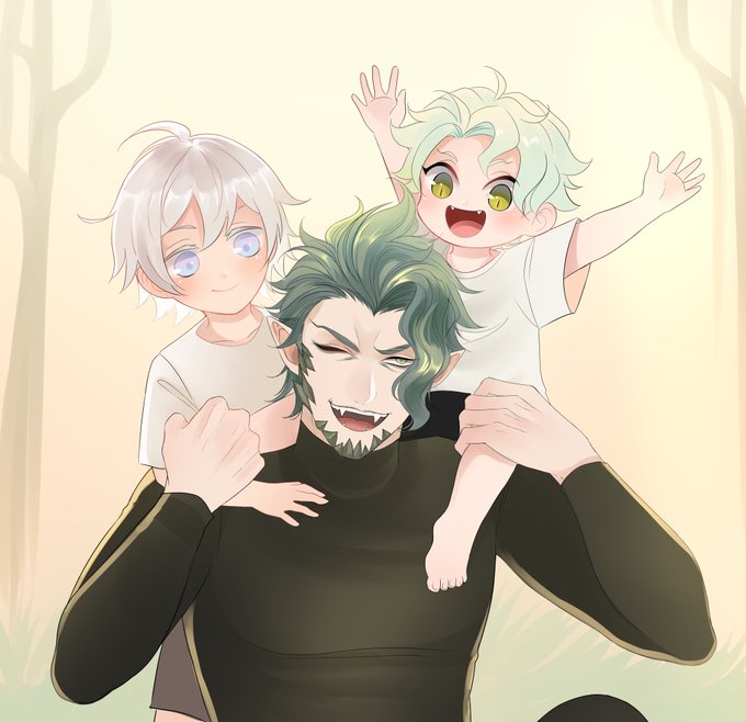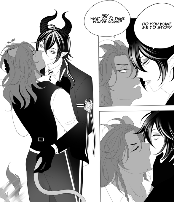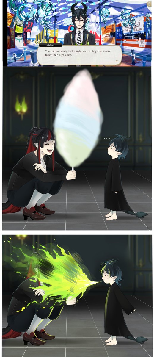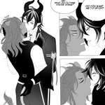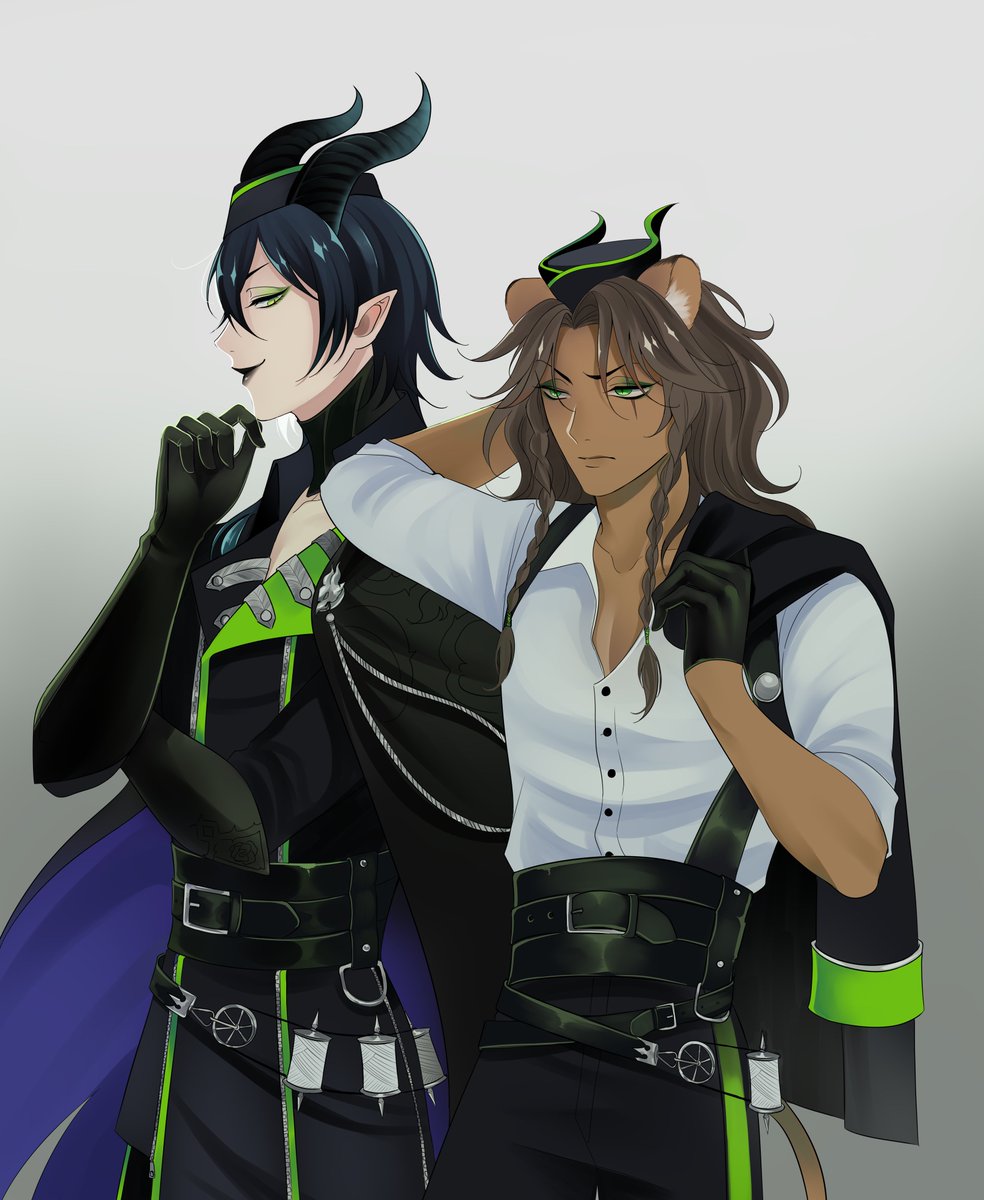 [malleleo/マレレオ] My part of the art trade with @/ohsleepie! AU Diasomnia Leona as retainer being basically Oh Not This Again the entire time while Malleus twirls his hair and gets into pesky situations on purpose :D