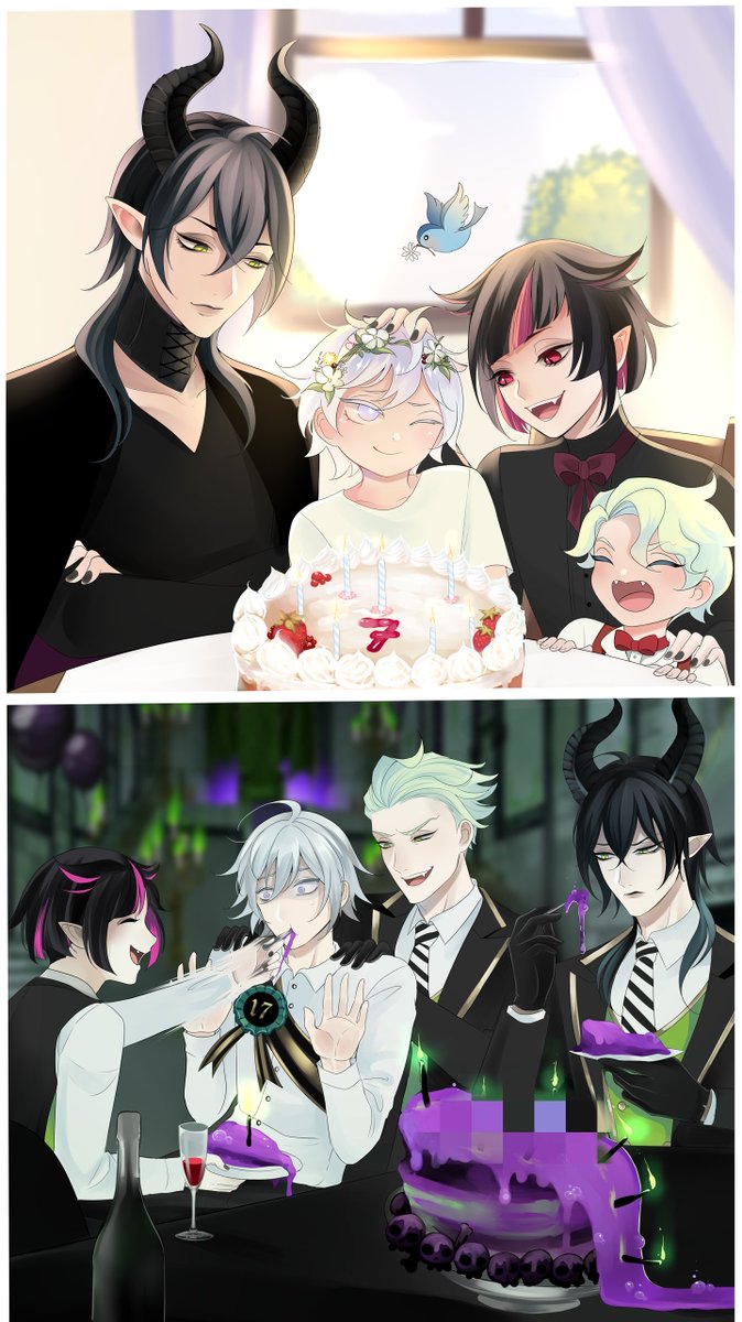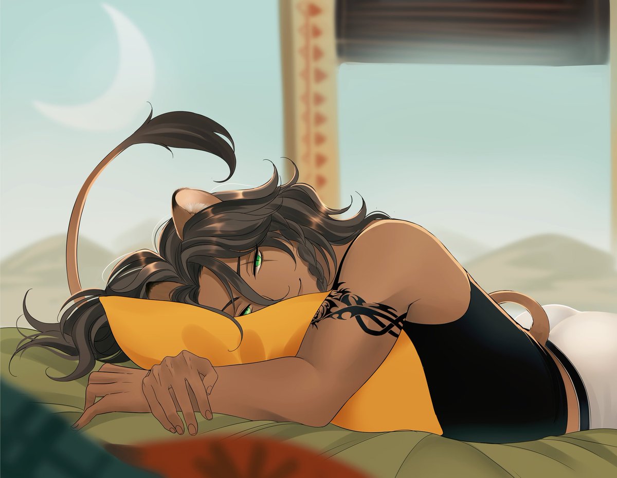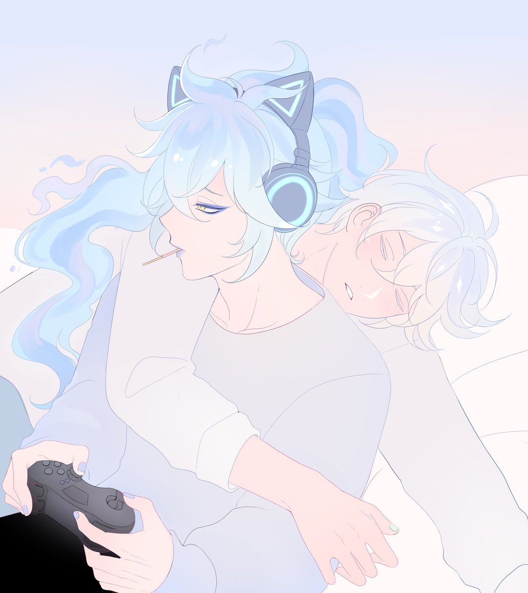 [malleleo/マレレオ] My part of the art trade with @/ohsleepie! AU Diasomnia Leona as retainer being basically Oh Not This Again the entire time while Malleus twirls his hair and gets into pesky situations on purpose :D