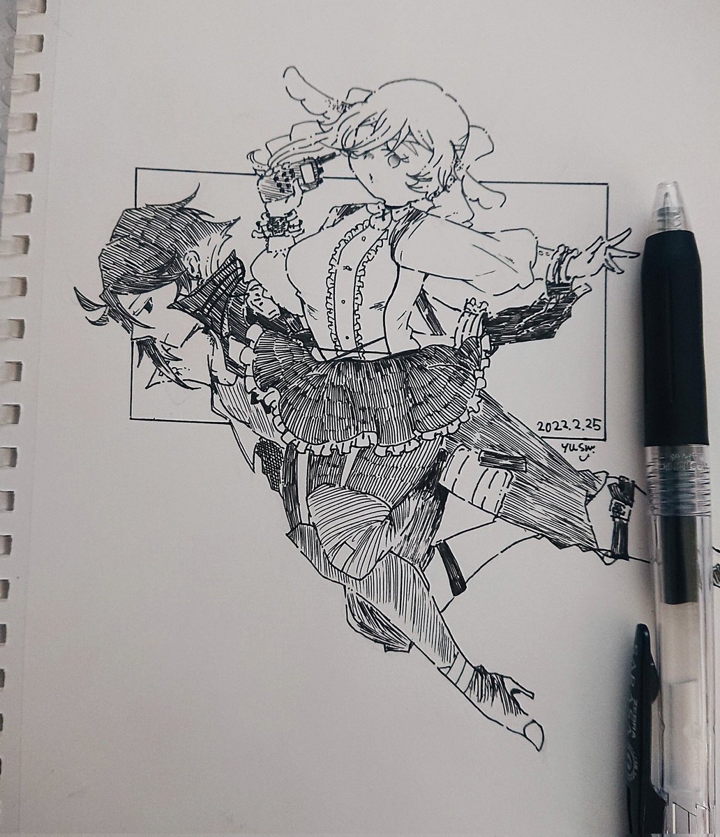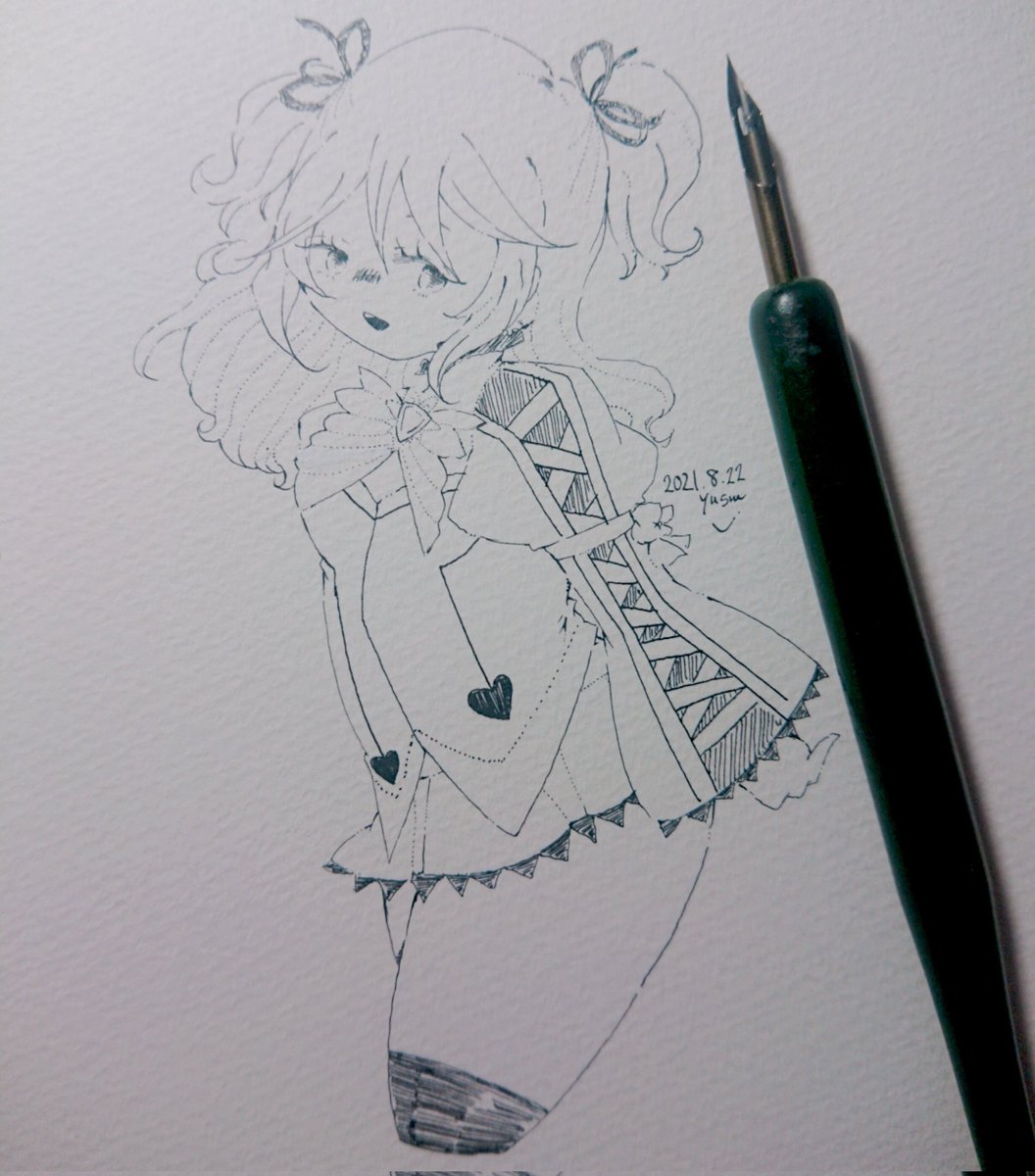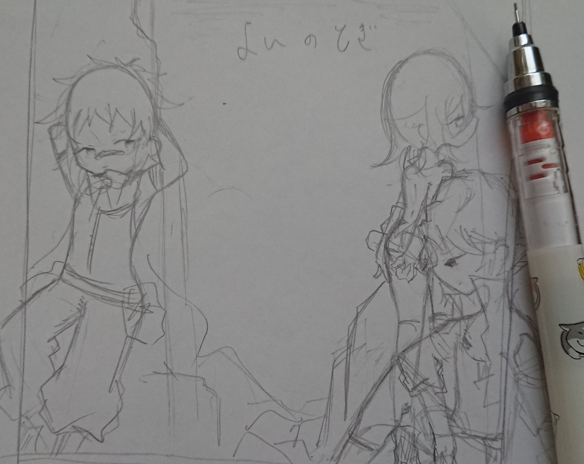 #このタグを見た人はラフ画とその完成絵を見せる ラフと(9割)完成
