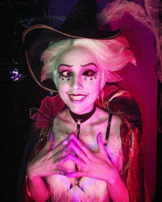 gettin' ready for Studios' Halloween Special 👻✨💜 feelin' witchyyyyyyy #HazbinHotel #AngelDust #cosplay @HazbinHotel