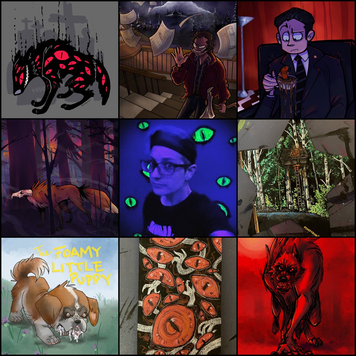 Howdy #PortfolioDay! I’m Keri, a transplant southern illustrator and taxidermist of the horror persuasion hiding out in the dreary PNW! linktr.ee/pedestrianwolf