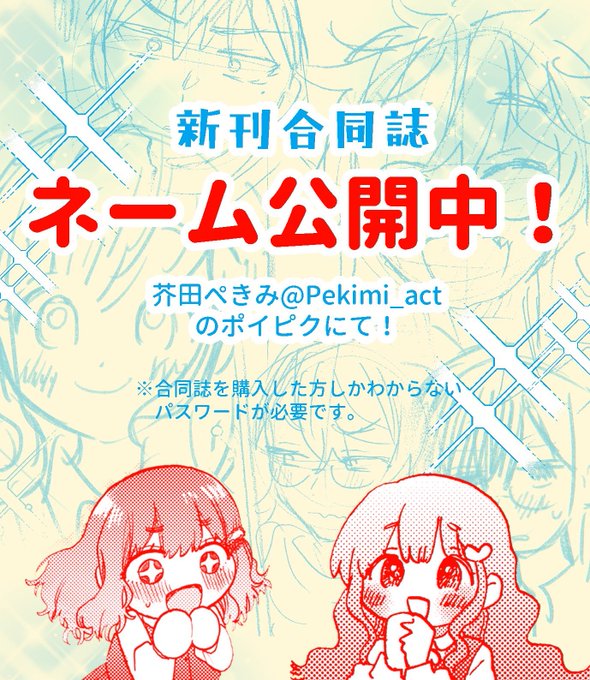 今日のコミティア141で頒布する合同誌のネームをポイピクで公開しています!閲覧するには合同誌をご購入された方にしかわからないパスワードが必要です。よろしくお願いします #COMITIA141