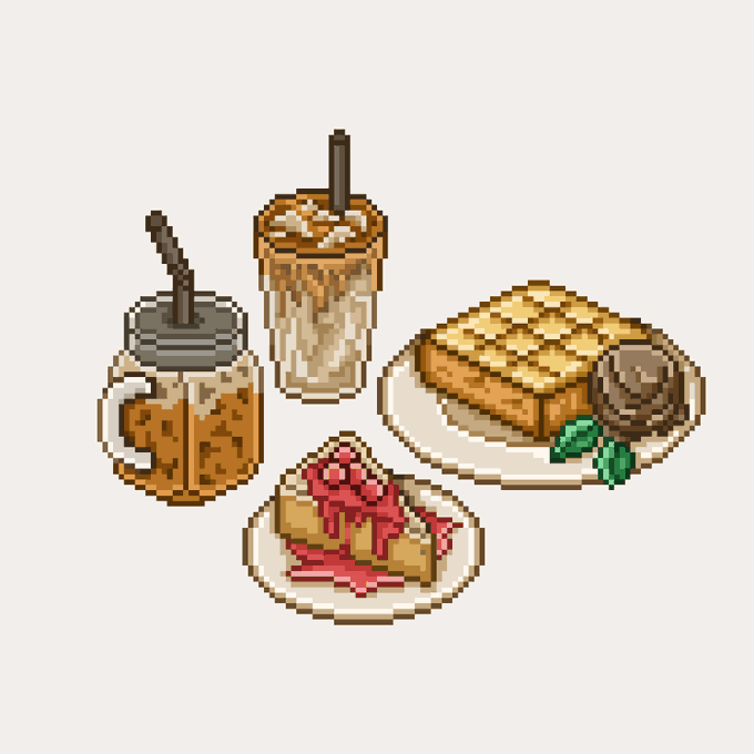 How's your Coffee and Dessert today? CAFE PixelArt Pack Let's get it! See more on My behance. behance.net/gallery/137128… #coffee #dessert #aseprite #pixelart #pixelartist #ドット絵