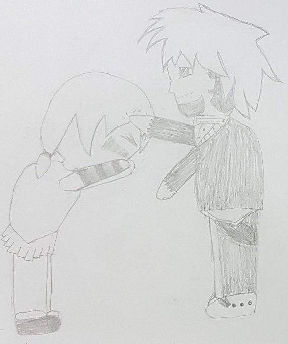 Here's today's #Inktober2019 drawing. It's Louis from Code Vein headpatting @Vtuber_Moe ^_^ I don't usually draw side profile so this was pretty different for me.