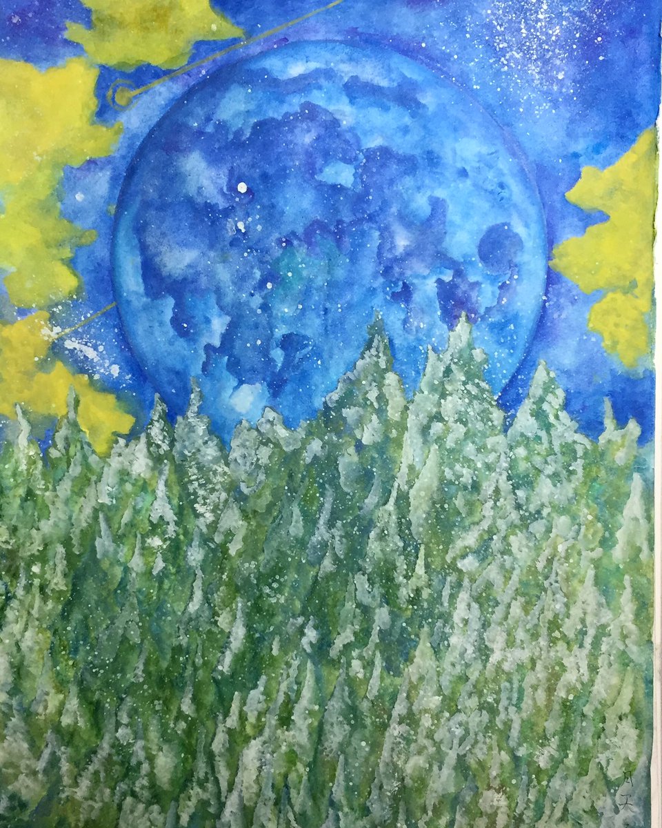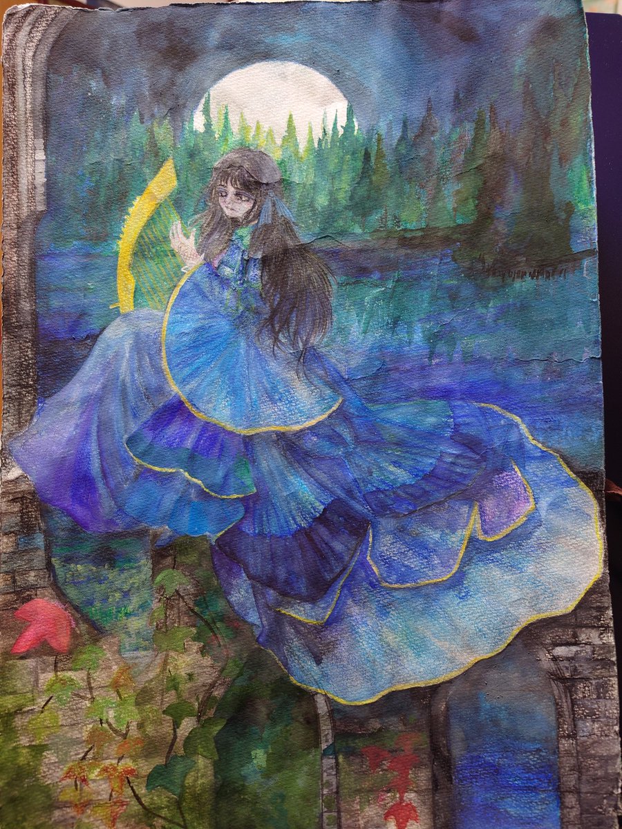 「月に寄せる歌」 人々に知られず 真意をはかるることなく かかる月夜に心の迷路を 通り行く思いを楽しむ者は幸いなるかな 高橋健二訳 ゲーテ詩集「月に寄せる」から #みんなで楽しむTwitter展覧会 #アナログ絵描きさんと繋がりたい #アナログ絵 #水彩色鉛筆 #冬の創作クラスタフォロー祭り