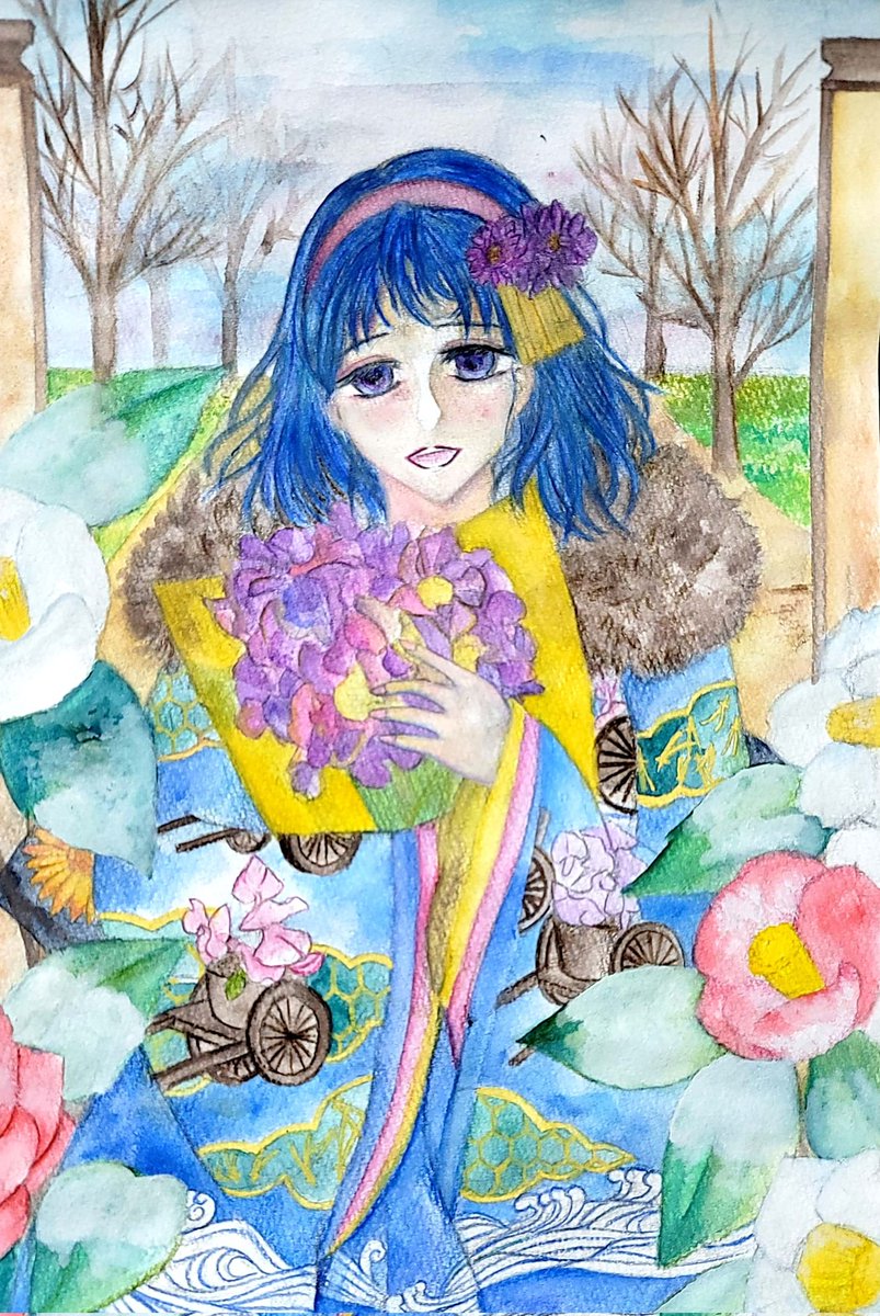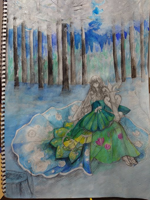 #wip #冬の創作クラスタフォロー祭 #水彩色鉛筆 「冬の花」進捗。 昨日VTuber天音彩の歌配信で天音さんが歌っていたSound Horizonの「美しきもの」を聞きながら描いていた。 それにしても、哀しいのに美しい歌。 私めでもローランになる事は許されますか、サンホラの神様…