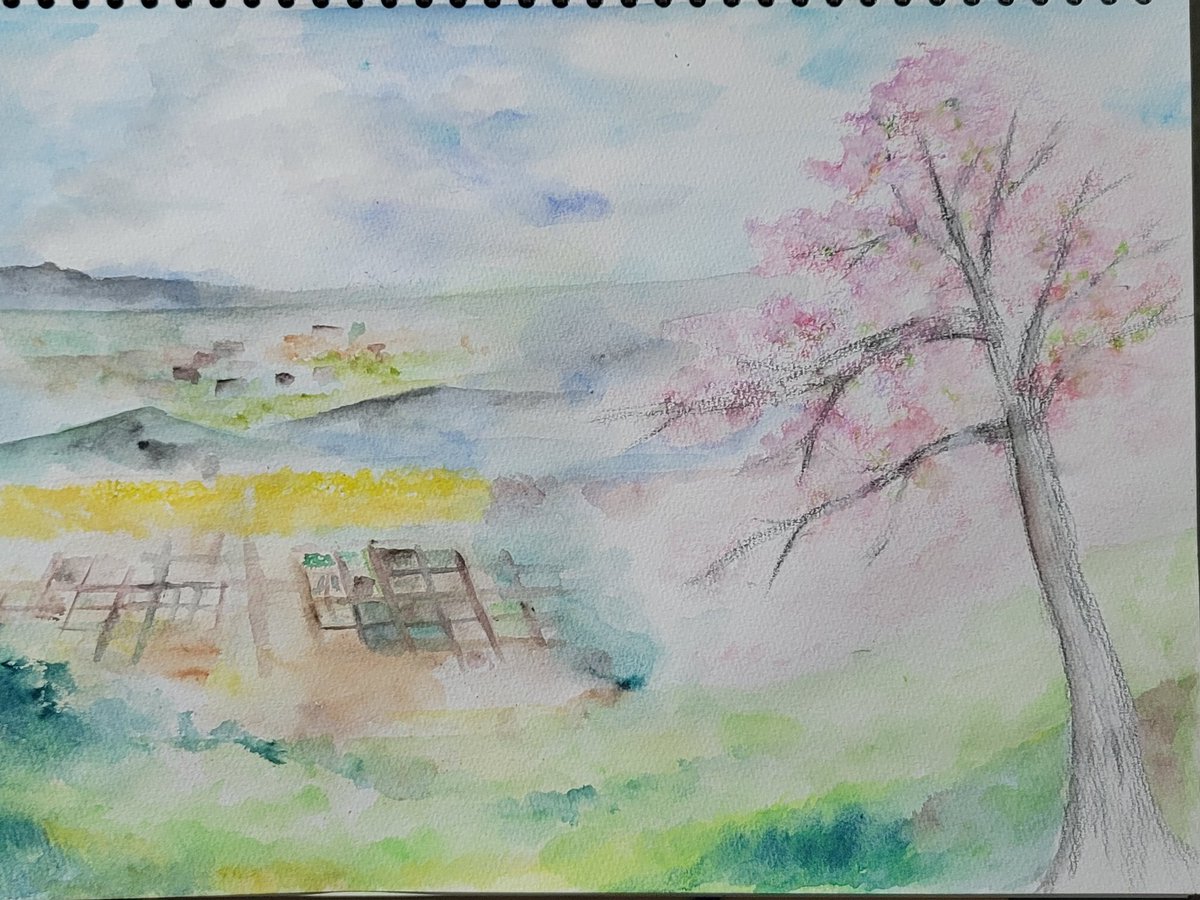 「見る人もなき山里の桜花ほかの散りなむのちぞ咲かまし」 古今和歌集 伊勢 水彩色鉛筆で下絵無しでさらさらと。 春ののどかな感じと、一人見る人のいないまま咲く桜の、散る予感が伝わったら幸いです。 #春の創作クラスタフォロー祭り #絵描きさんと繋がりたい