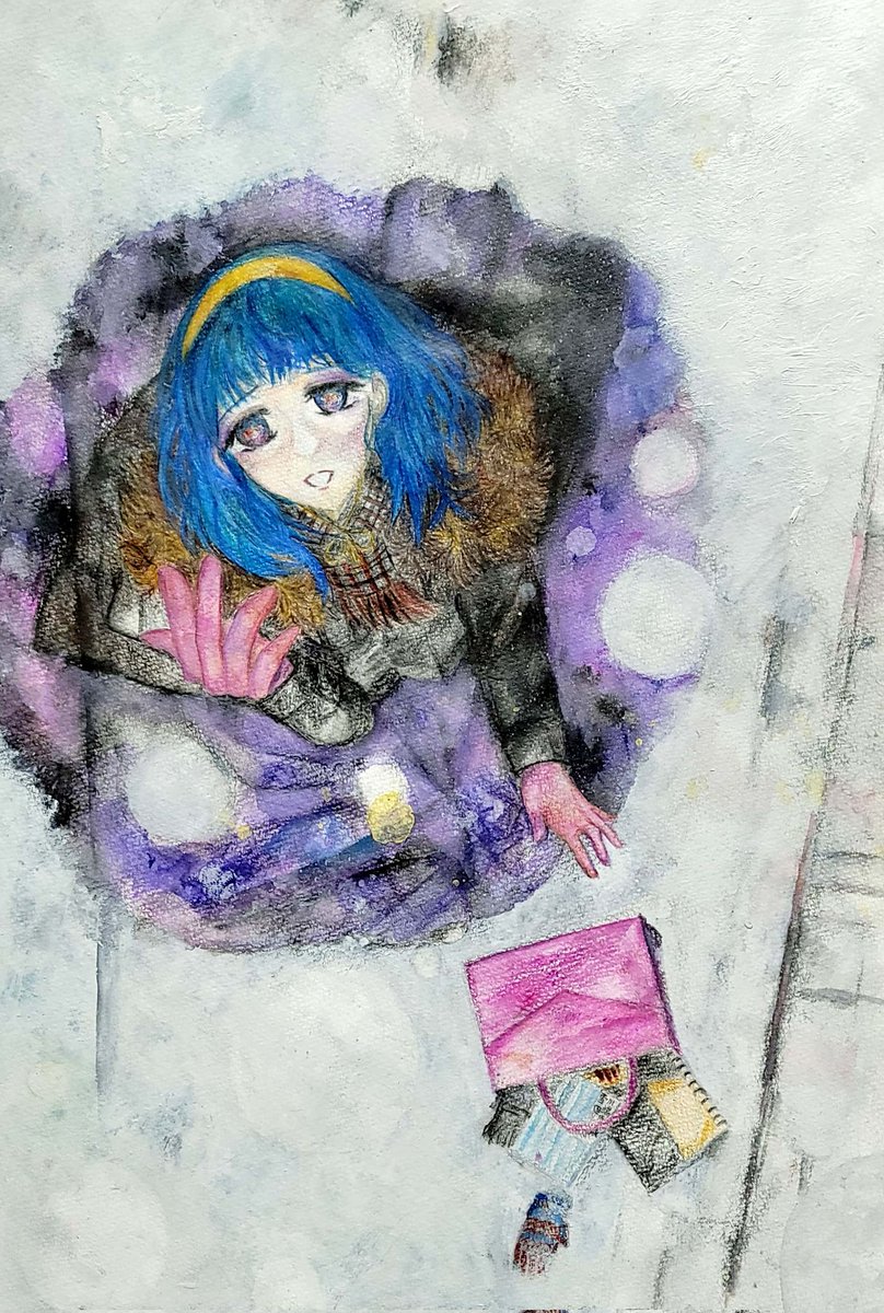 #絵描きさんとつながりたい トレンドに入っていたので便乗します。 水彩色鉛筆や顔彩、コピック、パステルなどを組み合わせたアナログイラストを描いています。 青色をメインにしているので、心落ち着けたい方は是非とも私の作品見に来てください。