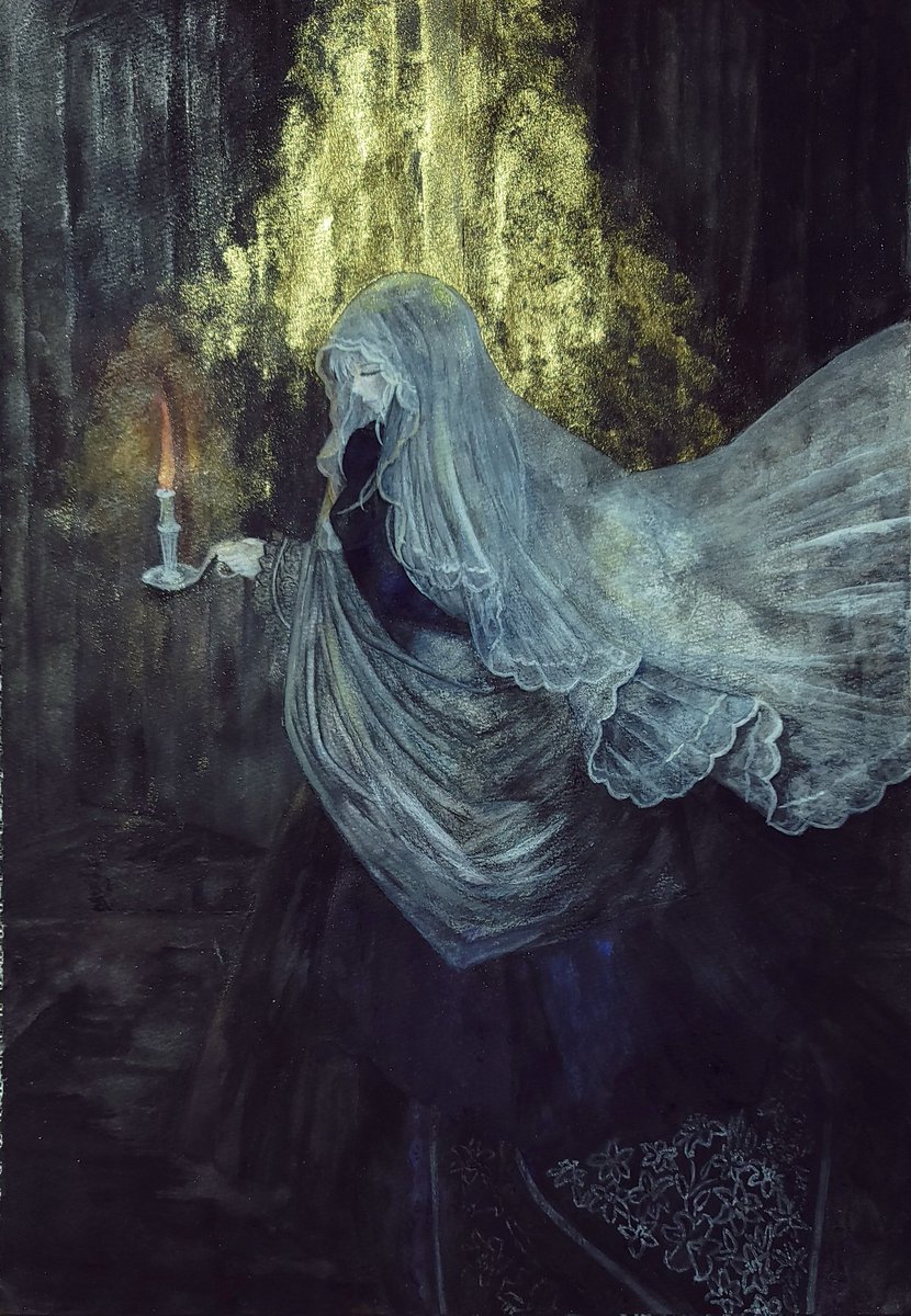 永遠ノ門 迷いを絶ち切ってでも、神への道に入る事を描いたトルストイの「光あるうち光の中を歩め」にヒントを得て描きました。暗闇の中を生きる中でも光の道へ灯火を掲げて歩みたい、そう思います。 #みんなで楽しむTwitter展覧会 #Twitter交流会会場 #絵描きさんとつながりたい