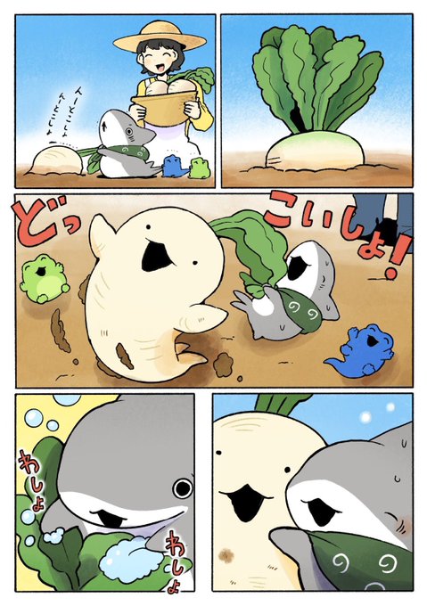 メソメソ…ふろしきがほっかむりに! どうしちゃったの? このお話も8巻に掲載です! ご予約受付中です! 通常版 amzn.asia/d/gJ2Arvj 特装版(ベビー子ザメの絵本つき) amzn.asia/d/ilf8o8J