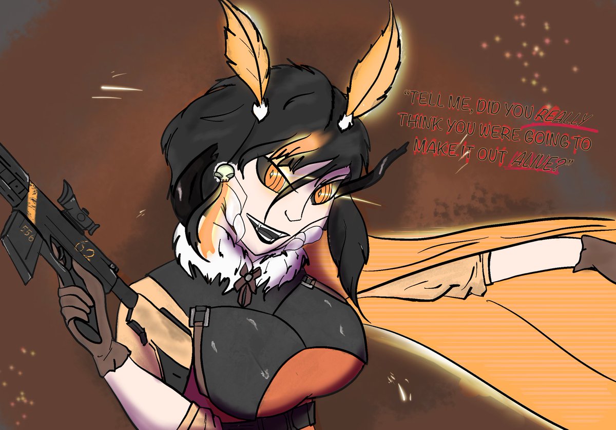 ごめん、失礼しますが死んでください❤〜 Actually I think she’s done asking here. Might wanna run. It’s more fun for her. #callillust @moricalliope