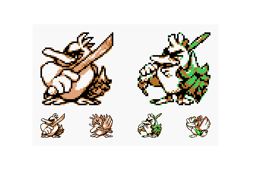 An attempt at an RGBY & GSC-styled Sirfetch'd. Really diggin' the design and glad Farfetch'd is getting an evo. Original Farfetch'd sprites from their respective games are there for ref. #pixelart #farfetchd #Sirfetchd #PokemonSwordandShield