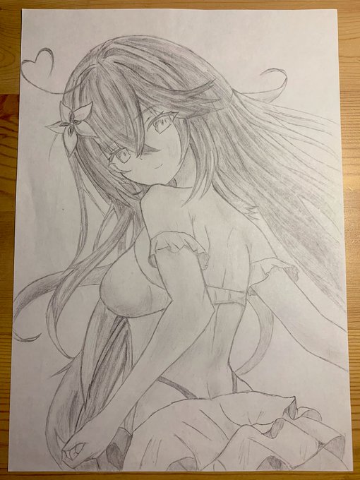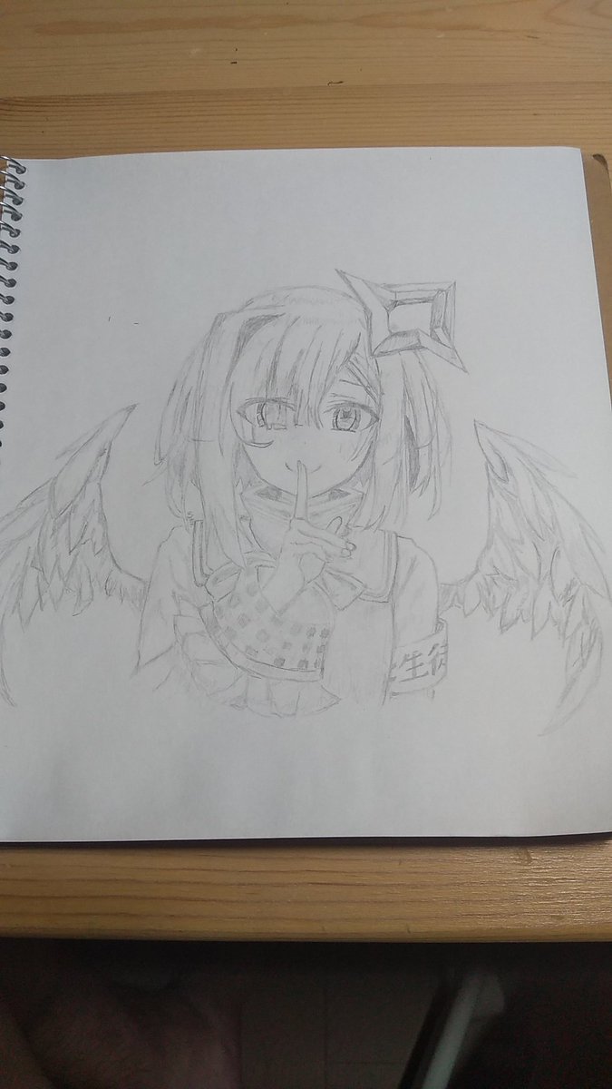 十五日、今回は肩の少し下まで描きました。翼は気分でつけました。 これは天使 #ホロライブ好きと繋がりたい #ホロライブ好きな人と繋がりたい #練習中 #アナログ絵